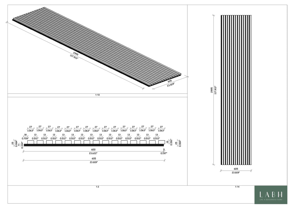 LABH Wood Slat panels transform your space by allowing you to easily create an accent or feature wall in your home. Our Ebony is the perfect colour for adding warmth and texture. It can be used to add contrast to light spaces or to create a sophisticated feel with its subtle wood grain.
